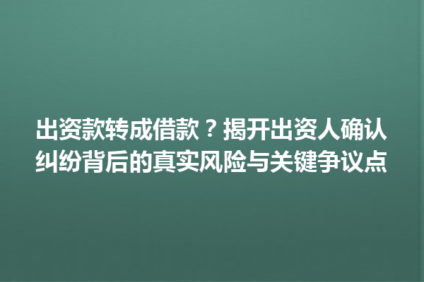在本文中,我们探讨了出资款转成借款中出资人确认纠纷的核心争议点及其背后的相关风险。显然,出资人与企业之间良好的沟通与透明的合同条款是预防法律风险的有效措施。投资者在与企业的合作中应时刻关注资金流向与合规性,并坚持书面协议的重要性。只有这样,才能确保商业运营的顺利进行,维护双方的合法权益。