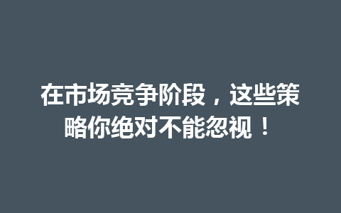 在市场竞争阶段,这些策略你绝对不能忽视! 一
