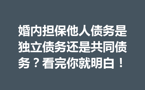 显然并非如此。这种情况下,很多人可能会认为,小李为张三担保的债务应算作独立债务,而不是共同债务。但在法律角度上,当两人是夫妻关系时,法律对婚内财务的定义要复杂得多。这也就是今天我们要探讨的话题:“婚内担保他人债务是独立债务还是共同债务?”看完,你或许能收获颠覆性的认知,同时避免未来可能出现的财务纠纷。