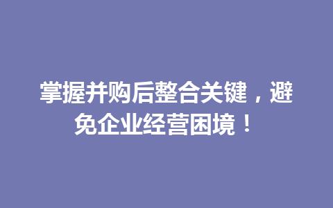 综上所述,掌握并购后整合的关键,不仅能帮助企业顺利渡过并购初期的挑战,也能为其在市场中的长期发展打下坚实基础。通过重视企业文化整合、管理结构调整和信息技术融合,企业能够有效避免经营困境,提升整体运营效率及竞争力。在未来的并购活动中,做好整合工作,方能在复杂的商业环境中立于不败之地。