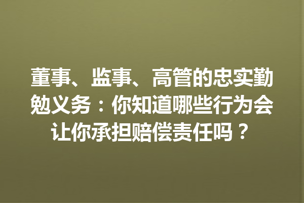 什么是董事、监事和高管的忠实勤勉义务?