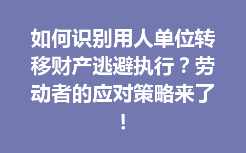 文章目录▼CloseOpen 如何识别用人单位是否在转移财产? 如果怀疑用人单位在转移财产,该怎…