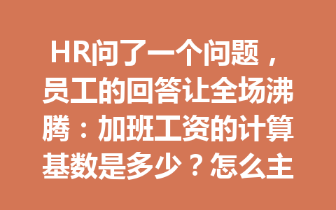 文章目录▼CloseOpen 加班工资的计算基数是什么? 怎么确定公司是否正确支付了加班工资? …