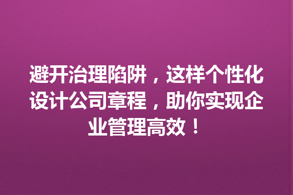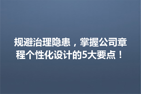 文章目录▼CloseOpen 什么是公司章程个性化设计? 为什么要避免使用模板化的公司章程? 在…