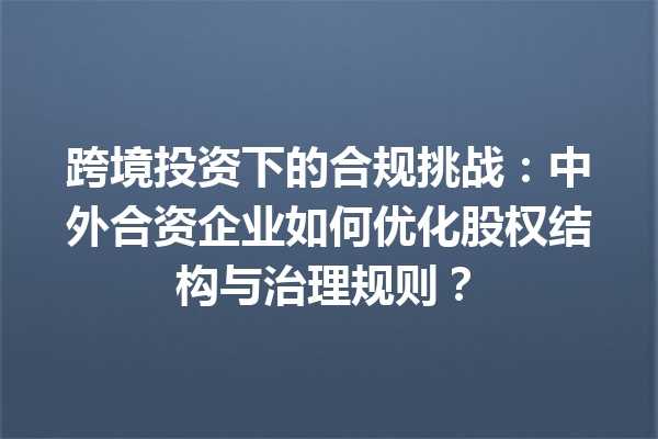 文章目录▼CloseOpen 跨境投资中的公司法合规性具体包括哪些内容? 如何优化中外合资企业的…
