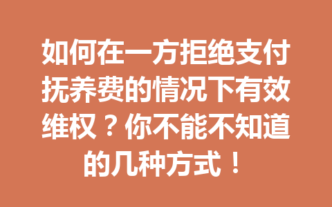 通过多种途径维权,您能够更好地保护自己和孩子的合法权益,让拒绝支付抚养费的人承担法律责任。