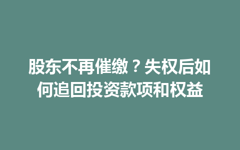 股东催缴失权的后果 股东催缴失权意味着股东在未履行出资义务的情况下,可能失去其在公司的决策权和分…