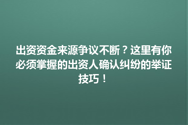 文章目录▼CloseOpen 出资资金来源争议的根本原因是什么? 如何确保资金流向的明确记录? …