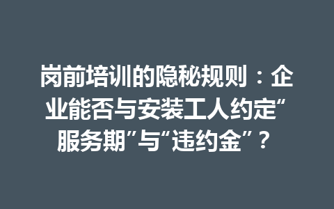 文章目录▼CloseOpen 企业是否可以在培训协议中设定服务期? 在岗前培训中,企业可以收取违…