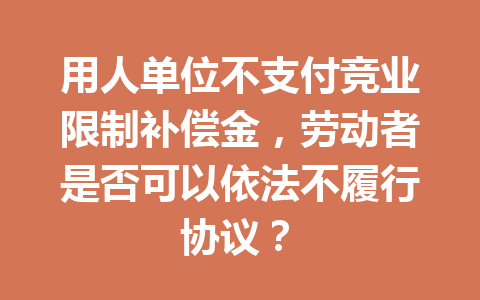 文章目录▼CloseOpen 用人单位不支付竞业限制补偿金,劳动者还有义务遵守协议吗? 如何确认…
