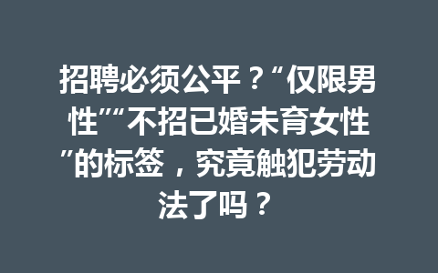 文章目录▼CloseOpen 招聘信息中使用“仅限男性”合法吗? 如何认定“不招已婚未育女性”的…