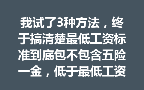 文章目录▼CloseOpen 最低工资标准到底包不包含五险一金? 如果发现自己的工资低于最低工资…