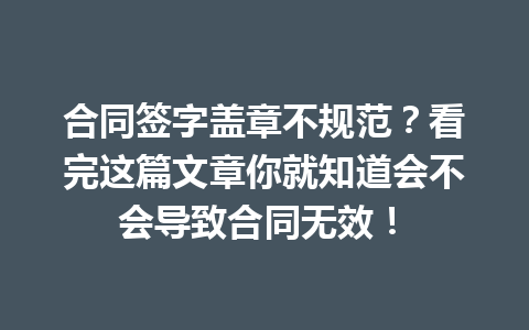 文章目录▼CloseOpen 合同签字盖章不规范会导致合同无效吗? 如何确保合同的签字和盖章符合…