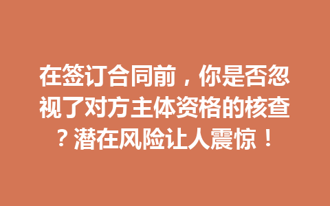 文章目录▼CloseOpen 未核查对方主体资格会有什么后果? 为什么合同争议会让企业承担法律责…