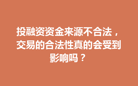 文章目录▼CloseOpen 什么是投融资资金来源不合法? 不合法资金来源会如何影响合法交易? …