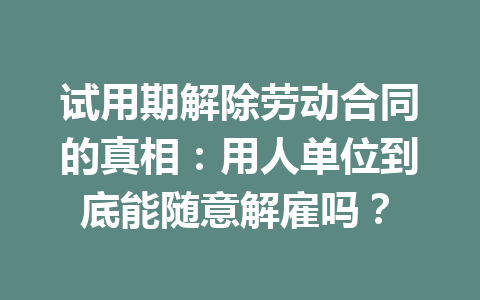 文章目录▼CloseOpen 试用期的基本法律框架 用人单位解除合同的合法性 维护自己权利的方法…