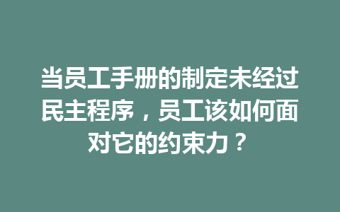 文章目录▼CloseOpen 员工手册未经过民主程序,是否仍具法律效力? 员工如何有效质疑员工手…