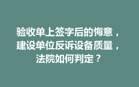 文章目录▼CloseOpen 在验收单上签字后,建设单位还能反诉吗? 法院是否会支持建设单位的反…