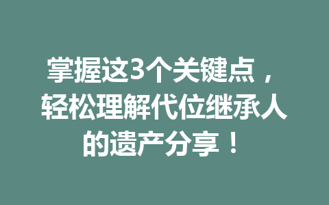 文章目录▼CloseOpen 代位继承人是指谁? 代位继承人能继承多少份额的遗产? 代位继承的法…