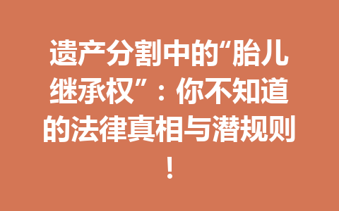 文章目录▼CloseOpen 颠覆性核心观点 关键论点一:法律对胎儿继承权的支持 关键论点二:遗…
