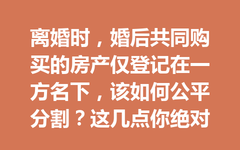 文章目录▼CloseOpen 离婚时,登记在一方名下的房产是否属于夫妻共同财产? 如何公正地分割…