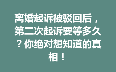 文章目录▼CloseOpen 理由与准备 法律上的时效要求 建立法律支持 第一次起诉离婚被驳回的…