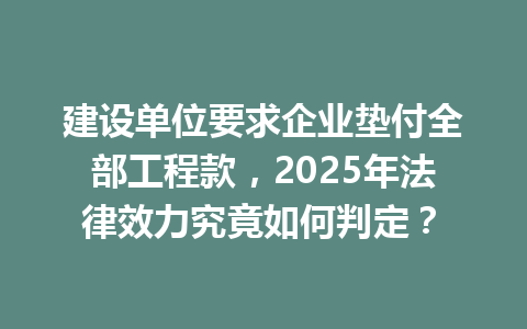 文章目录▼CloseOpen 建设单位要求企业垫付全部工程款安全吗? 如果合同中约定了垫付工程款…