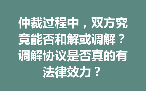 文章目录▼CloseOpen 仲裁过程中和解和调解的最大区别是什么? 调解协议在法律上真的有效吗…