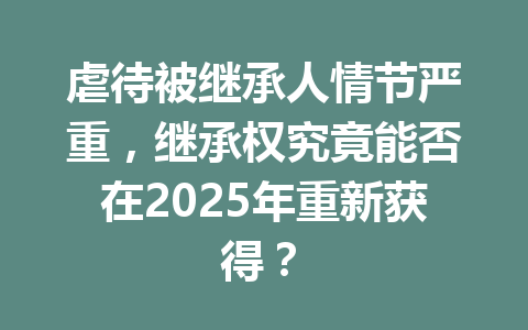 文章目录▼CloseOpen 什么情况会导致继承权被剥夺? 继承权恢复需要哪些证据? 恢复继承权…