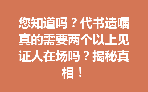 文章目录▼CloseOpen 代书遗嘱需要几个见证人? 见证人有什么特别要求吗? 不多见证人是否…