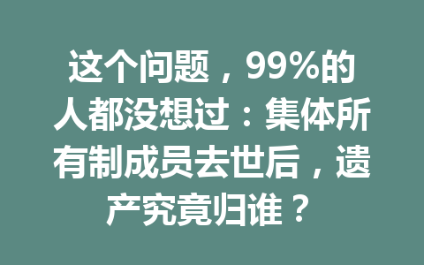 文章目录▼CloseOpen 集体所有制成员去世后,遗产会如何处理? 如果去世成员没有直系亲属,…