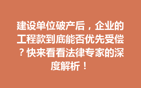 文章目录▼CloseOpen 建设单位破产后,企业的工程款会被优先受偿吗? 如何确认工程款的优先…
