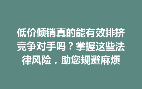 文章目录▼CloseOpen 低价倾销是什么? 低价倾销会遭遇怎样的法律风险? 低价倾销对行业的…