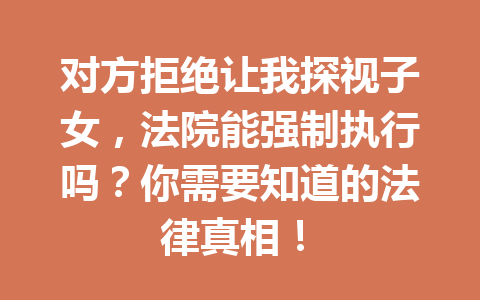 文章目录▼CloseOpen 如果对方拒绝让我探视子女,我该如何开始法律程序? 法院如何处理探视…