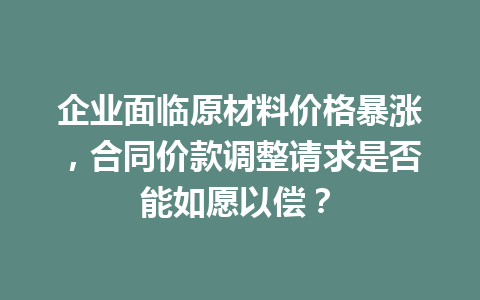 文章目录▼CloseOpen 企业在合同中如何保护自身免受原材料价格暴涨的影响? 如果合同中没有…