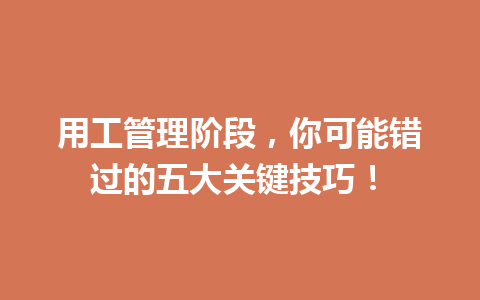 文章目录▼CloseOpen 用工管理包括哪些内容? 实施用工管理的目的是什么? 如何建立有效的…