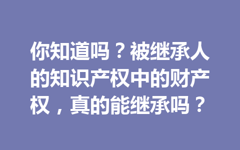 文章目录▼CloseOpen 什么是知识产权? 被继承人的知识产权如何继承? 继承知识产权时需要…
