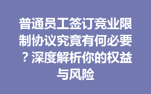 文章目录▼CloseOpen 普通员工签订竞业限制协议到底有什么好处? 如果我违反了竞业限制协议…