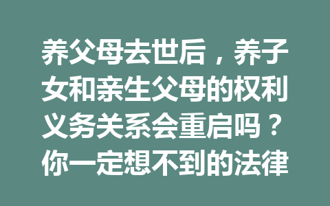 文章目录▼CloseOpen 颠覆性核心观点 法律关系的变化 亲生父母的权利恢复 实际案例分析 …