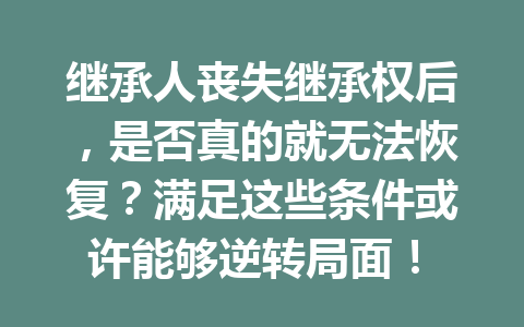 文章目录▼CloseOpen 什么情况会导致继承权被剥夺? 继承权恢复需要哪些证据? 恢复继承权…