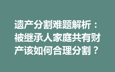 文章目录▼CloseOpen 遗产分割时,如何确定哪些财产属于共同财产? 如果家庭成员对遗产分割…