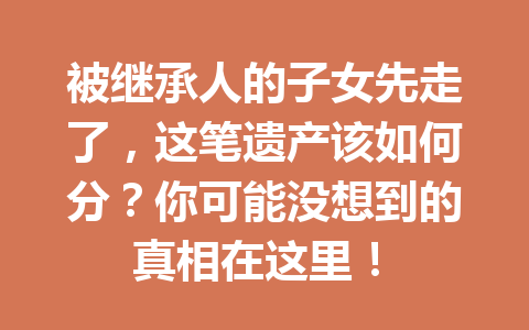 文章目录▼CloseOpen 被继承人的子女先于被继承人去世,遗产会如何分配? 什么是遗产的具体…