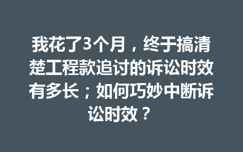 文章目录▼CloseOpen 工程款追讨的诉讼时效具体是多久? 如何能够中断诉讼时效? 提起诉讼…