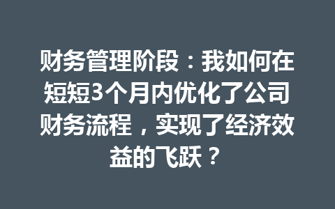 文章目录▼CloseOpen 财务管理阶段的优化需要哪些关键步骤? 在短短三个月内,能实现多少效…