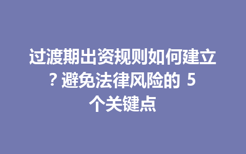 过渡期出资规则的关键点 清晰界定资金来源 建立过渡期出资规则时,最重要的是要清晰界定资金的来源。…
