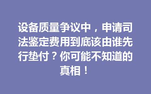 文章目录▼CloseOpen 在设备质量争议中,司法鉴定费用需要先行垫付吗? 司法鉴定费用大概需…