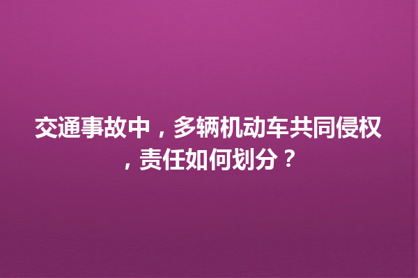 文章目录▼CloseOpen 在多辆机动车共同侵权的情况下,责任是如何具体划分的? 怎样能证明在…