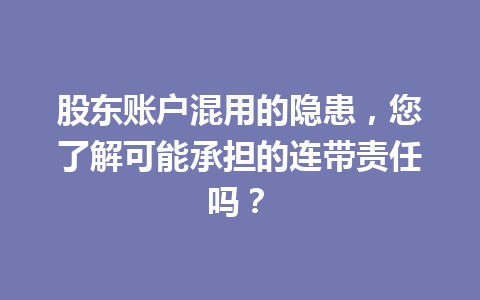 文章目录▼CloseOpen 股东账户混用究竟是什么? 为什么混用账户会导致连带责任? 股东如何…