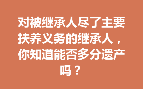文章目录▼CloseOpen 如果我对被继承人尽了主要扶养义务,能否在遗产中得到更多吗? 扶养义…