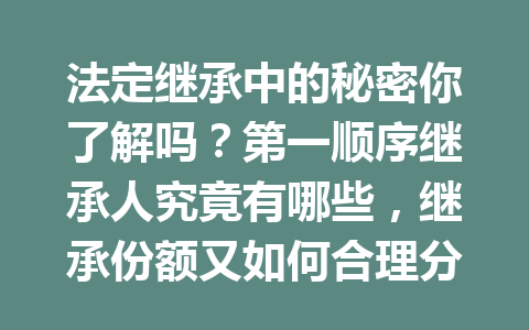 文章目录▼CloseOpen 第一顺序继承人有哪些? 继承份额如何合理分配? 如何在遗产分配中避…